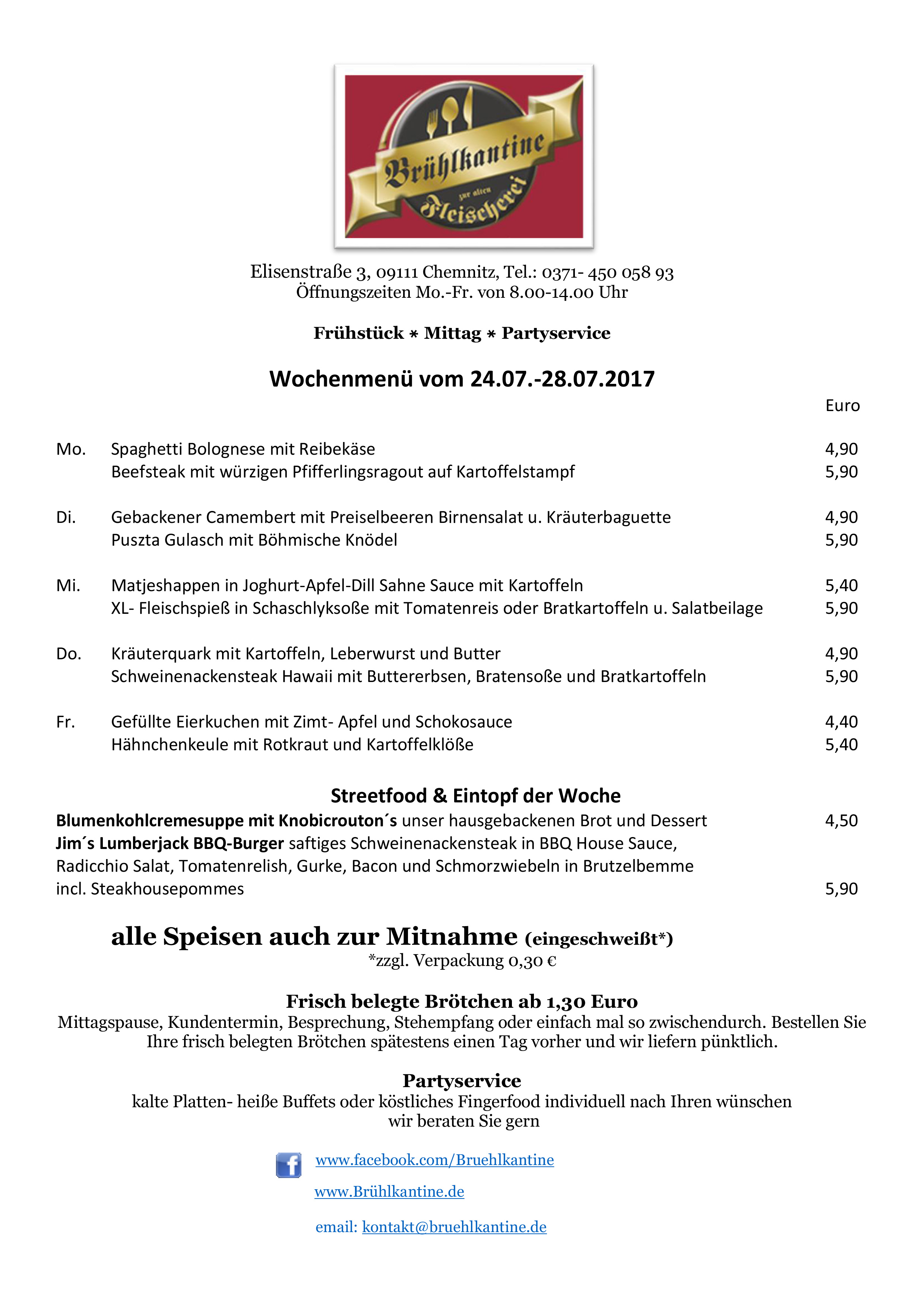 Unser Wochenmenü vom 24.07.-28.07.2017