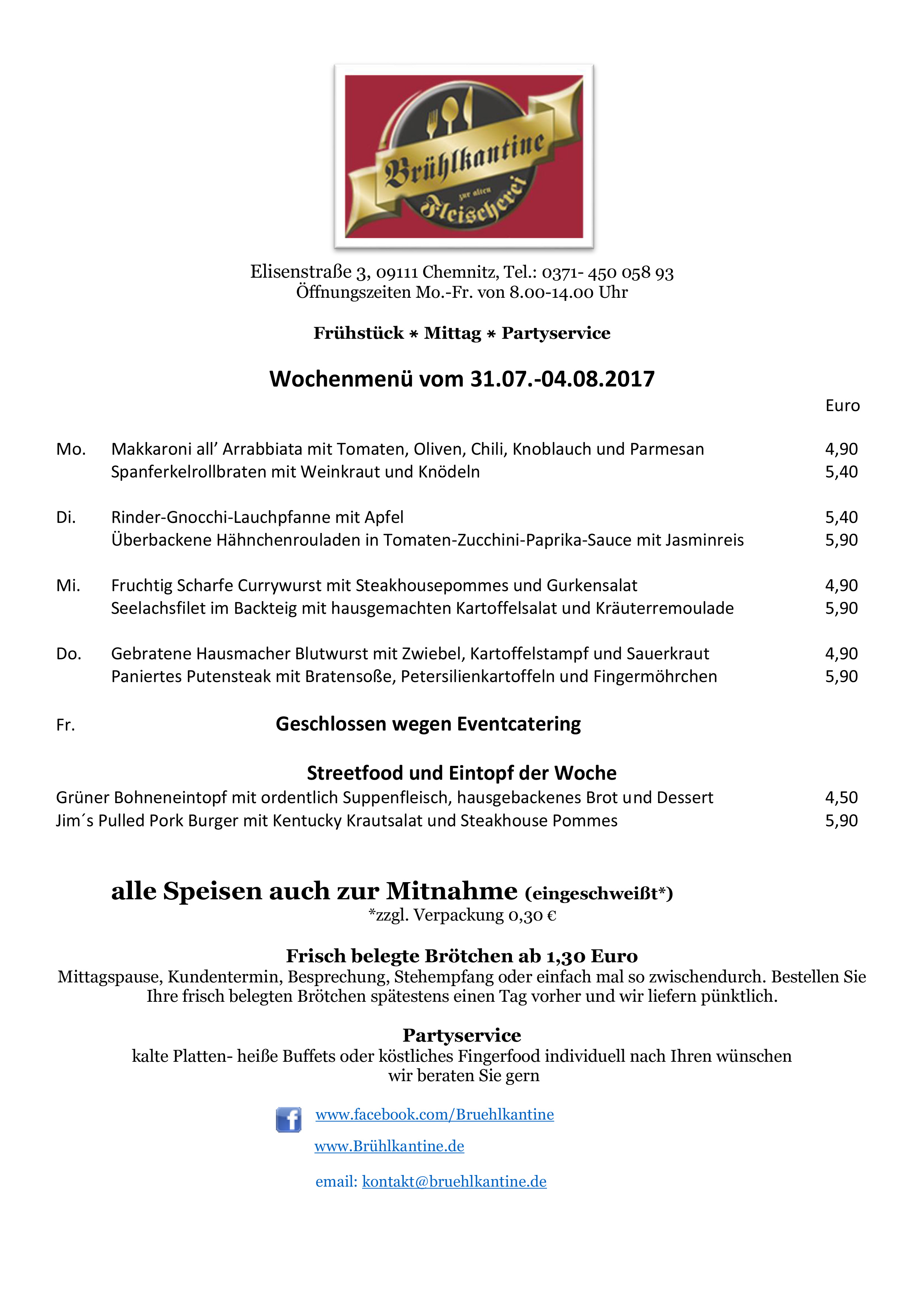 Unser Wochenmenü vom 17.07.-21.07.2017