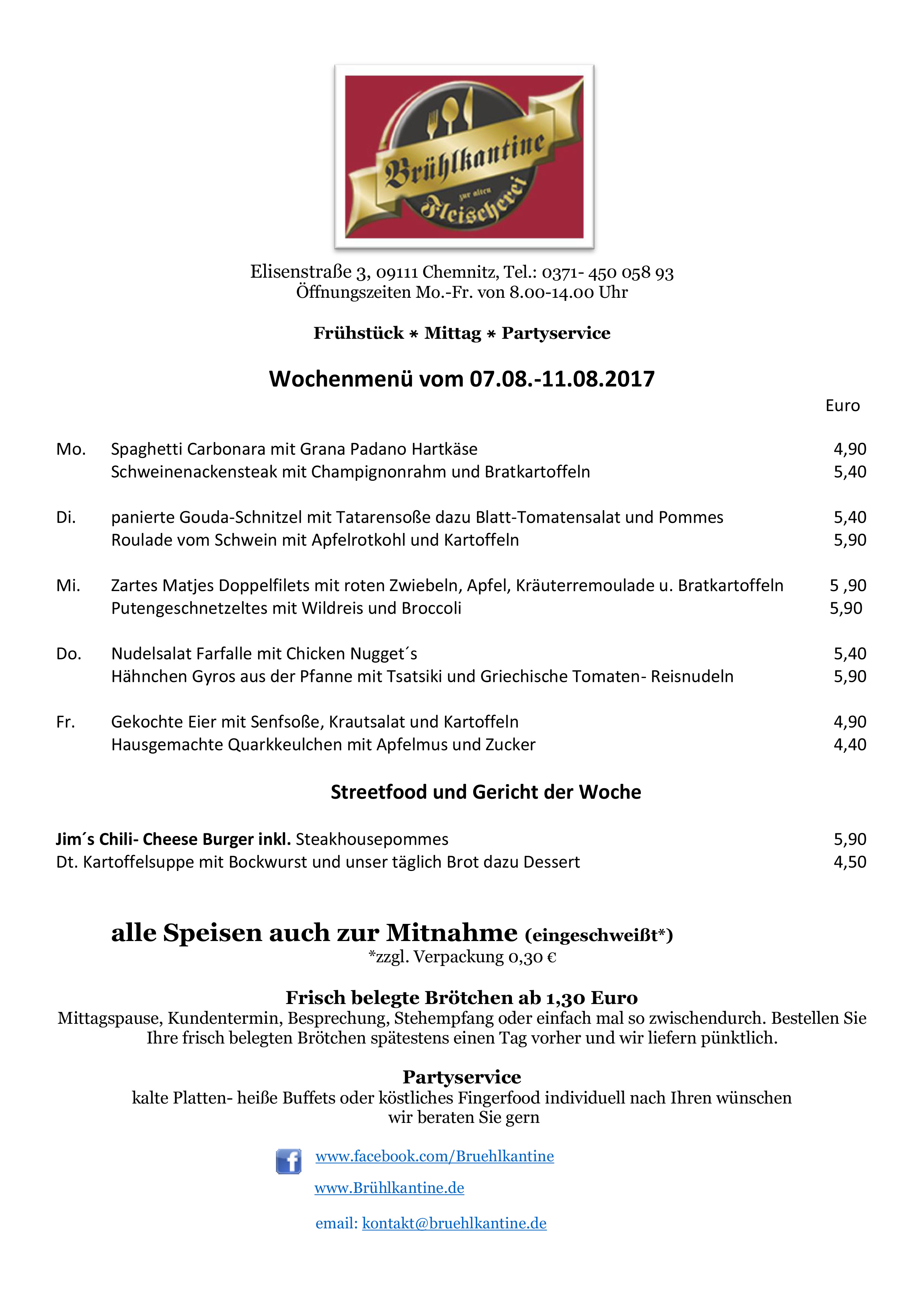 Unser Wochenmenü vom 07.08.-11.08.2017