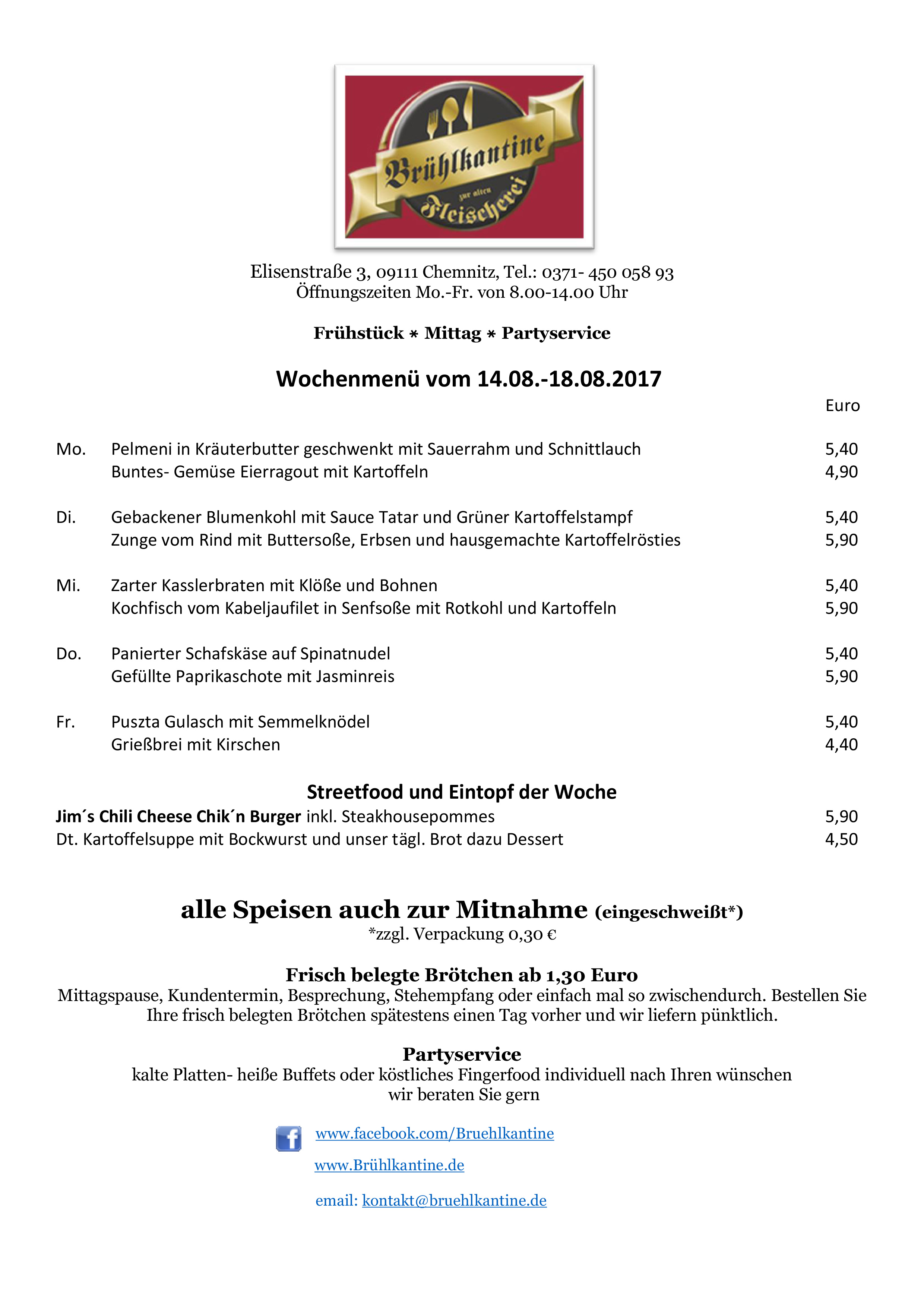 Diese Woche halten wir für Sie zum Mittagessen / Mittagstisch* folgendes bereit: Montag: Pelmeni in Kräuterbutter geschwenkt mit Sauerrahm und Schnittlauch – 5,40€ Buntes- Gemüse Eierragout mit Kartoffeln – 4,90€ Dienstag: Gebackener Blumenkohl mit Sauce Tatar und Grüner Kartoffelstampf – 5,40€ Zunge vom Rind mit Buttersoße, Erbsen und hausgemachte Kartoffelrösties – 5,90€ Mittwoch: Zarter Kasslerbraten […]