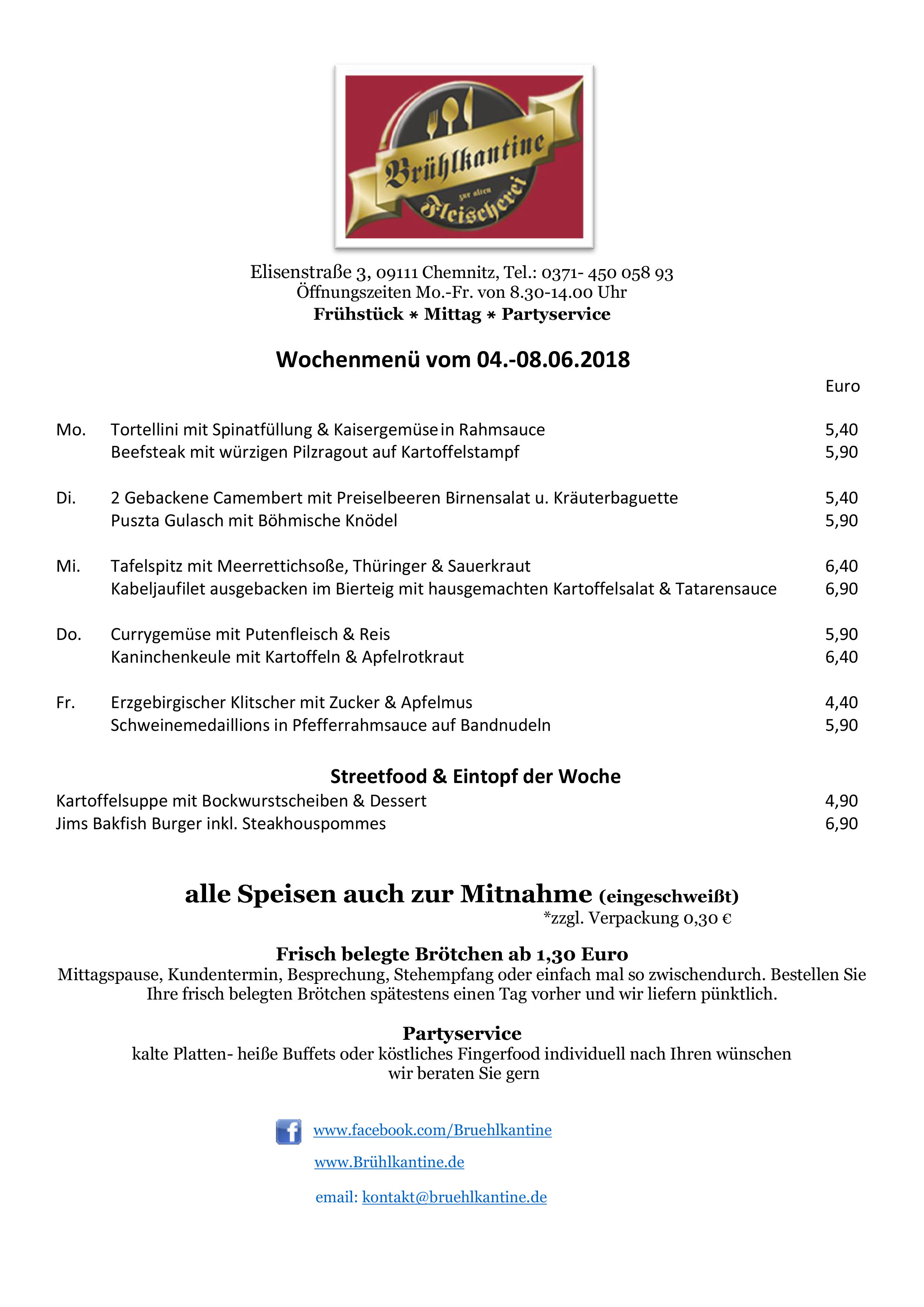Unser Speiseplan für die 23. KW (04.-08.06.2018) – Frühstück & Mittagessen & Catering – Brühlkantine Chemnitz 3. Juni 2018