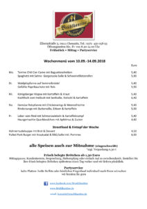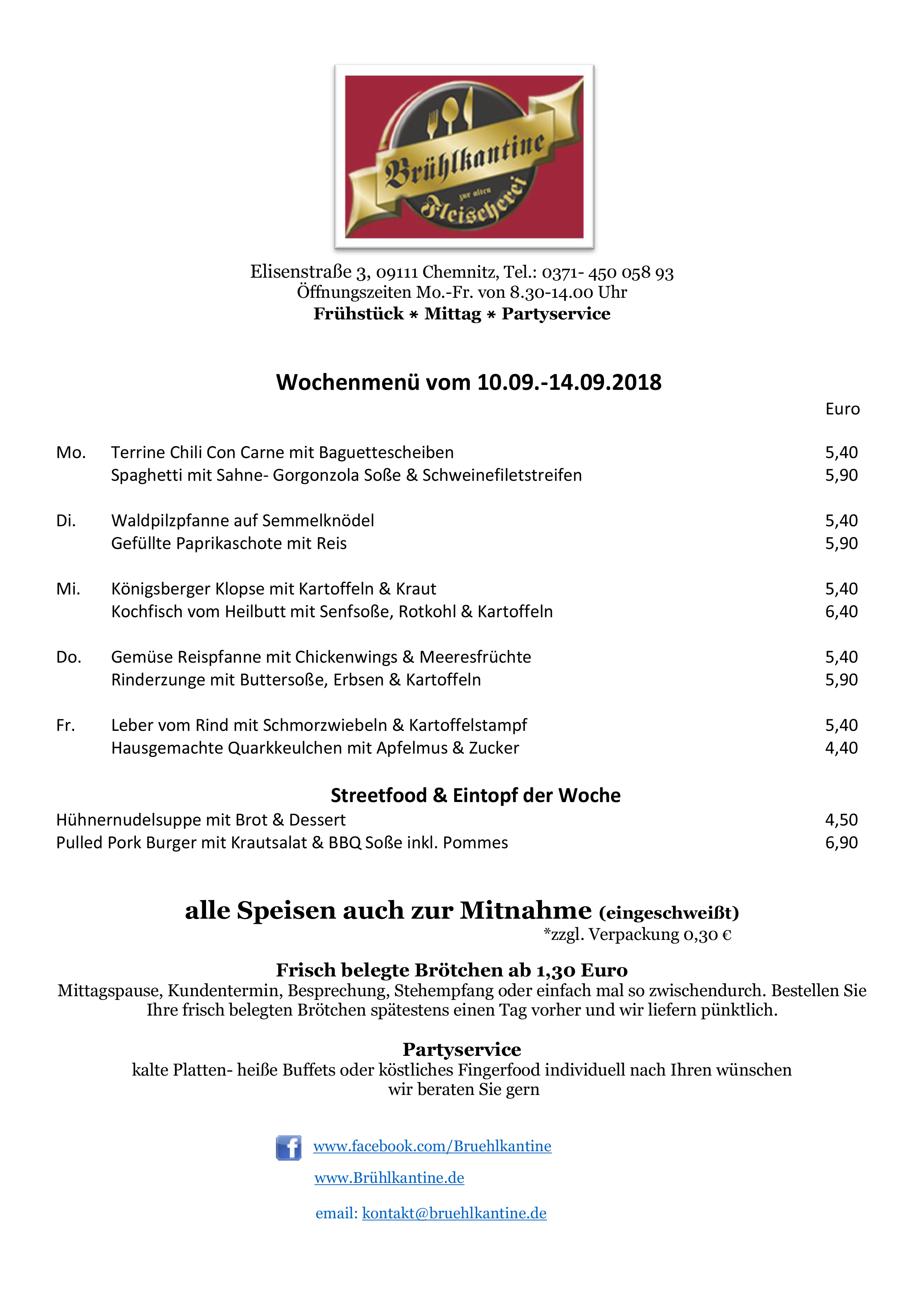 Unser Speiseplan für die 37. KW (10.09.-14.09.2018) – Frühstück & Mittagessen & Catering – Brühlkantine Chemnitz 8. September 2018