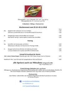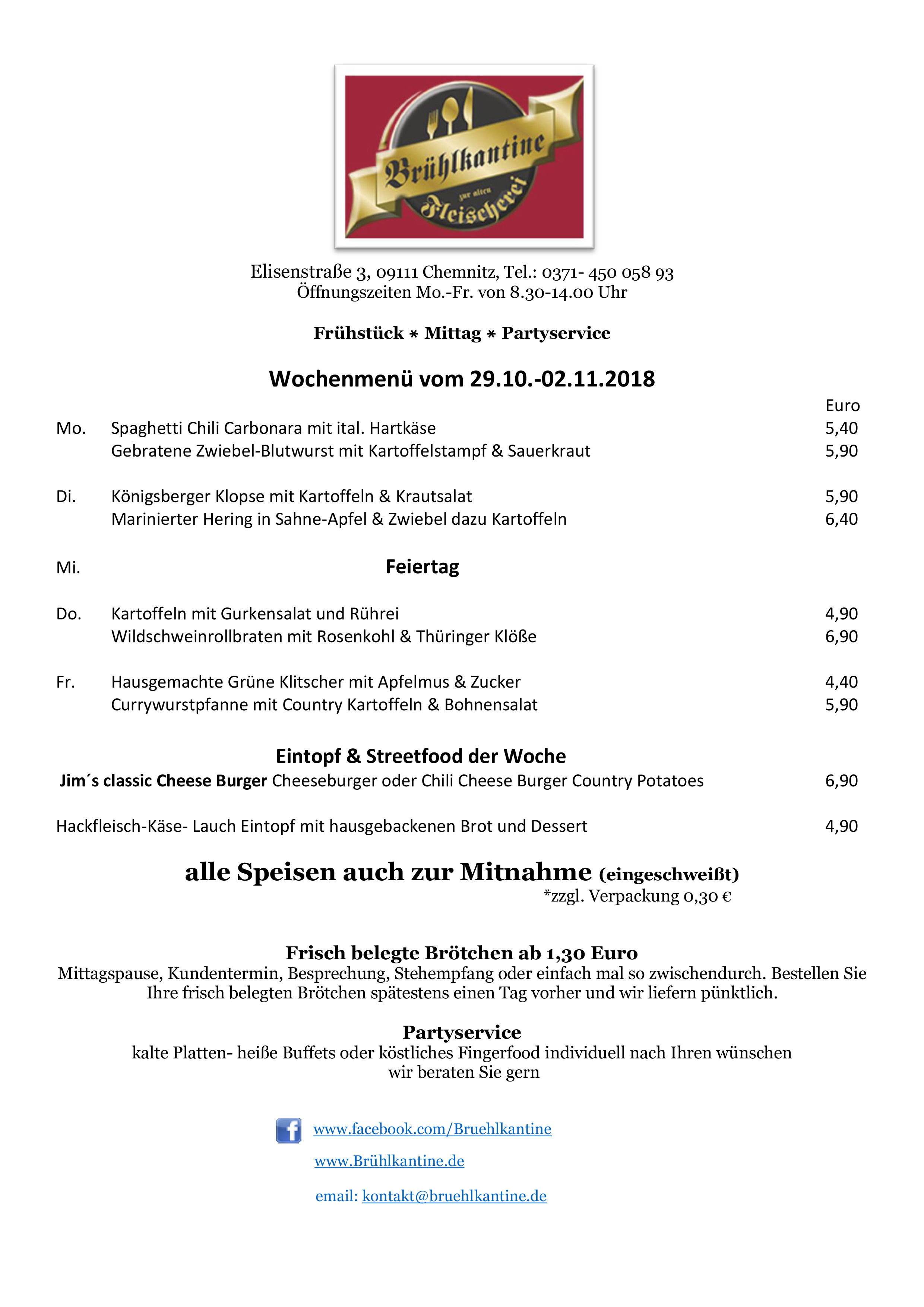 Unser Speiseplan für die 44. KW (29.10.-02.11.2018) – Frühstück & Mittagessen & Catering – Brühlkantine Chemnitz 28. Oktober 2018